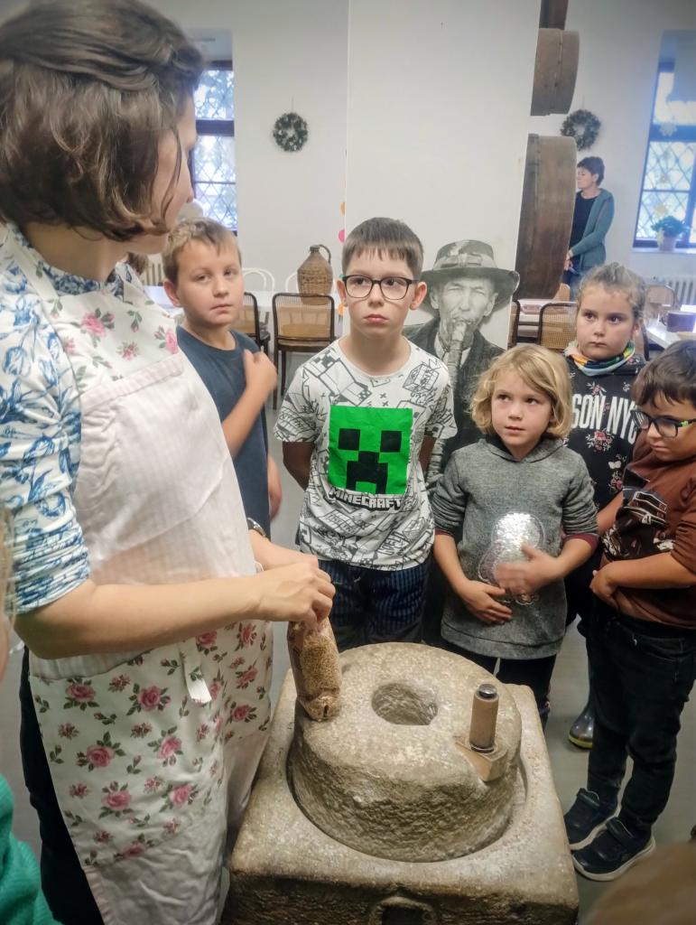 Výprava na Vsetín a jeho zámek, kde jsme se učili vyrábět máslo, péct placky, navštívili jsme sklepení i výstavu.