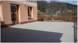 Mateřská škola má i velkou terasu, která bývá využívána ke cvičení, k hrám a veřejným vystoupením.